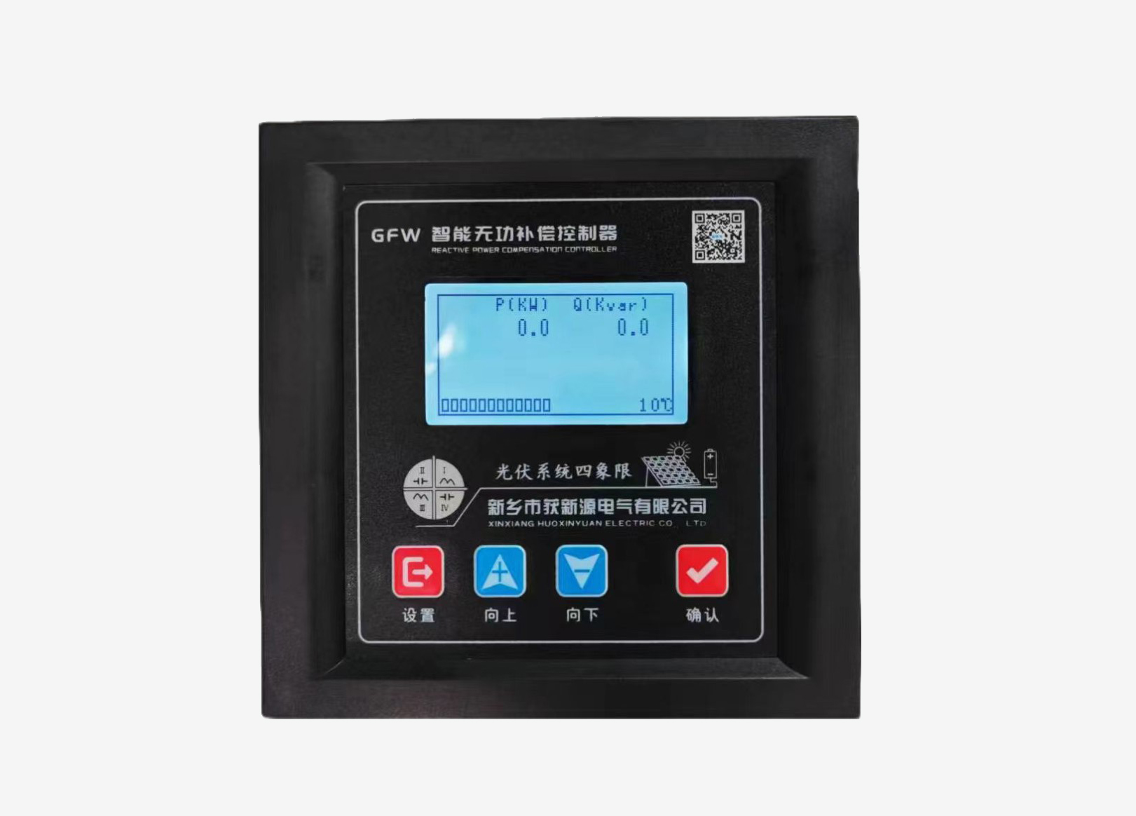 中文實時顯示電網(wǎng)功率因數(shù)、電壓、電流、有功/無功功率、電壓總諧波畸變率、電流總諧波畸變率、頻率、電容器投、切狀態(tài)和故障報警狀態(tài)。