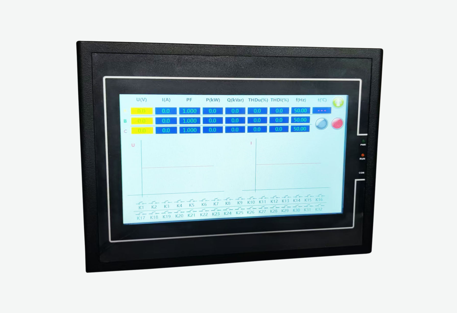 觸摸屏無功補(bǔ)償控制器以高速數(shù)字信號處理器為核心,采用交流取樣,人機(jī)界面為7寸點(diǎn)陣大屏幕液晶觸摸顯示器,其具有配電監(jiān)測、無功補(bǔ)償、諧波分析。具備多種保護(hù)功能,報警輸出功能;可檢測柜內(nèi)溫度,并啟動散熱風(fēng)機(jī)(定制);并可監(jiān)測開關(guān)狀態(tài)。